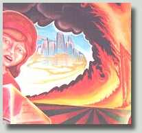 Agora veja de perto à esquerda e as crianças mortas dormindo em tijolos. Não existem traços de violência nelas. Foram simplesmente desprovidas de vida, como se tivessem sido envenenadas por um gás mortal do arco-íris acima delas. O monstro, protegido pela mascara de gás, esta apontando a linha de vítimas em direção à carta abaixo a direita.