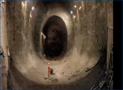 84 milhões m³ de terra foram removidos, muito mais do que o normal necessário. Isso levantou suspeitas da construção “verdadeira” é subterrânea.