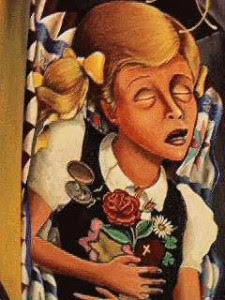 O monstro acordou! Esta figura militar grande e agressiva está vestido com uniforme Nazista (note o símbolo no chapéu) com o rosto parecido com uma máscara de gás. Suas mãos estão segurando um rifle e uma cimitarra que esta "violentando" a paz do pombo. Na esquerda esta desenhada uma linha sem fim, de pais chorando segurando seus filhos e bebês mortos. Essa é verdadeiramente uma pintura abominável, sem mensagem alguma de moral ou redenção.