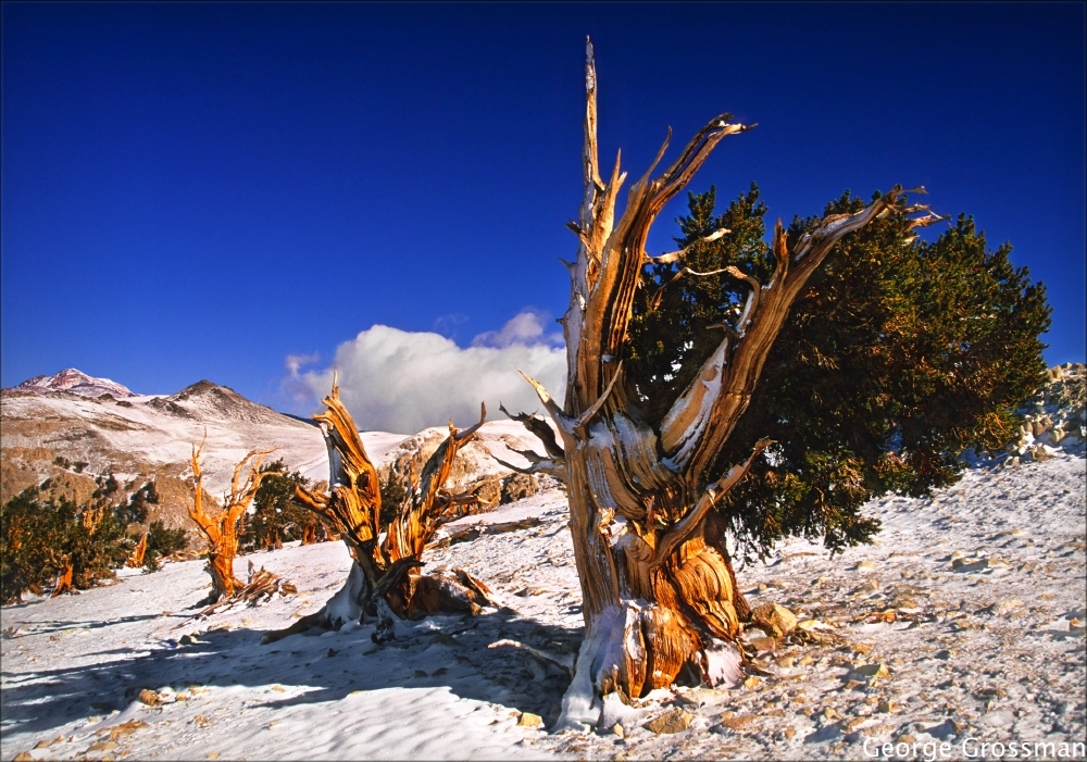 Um pequeno grupo de pinho – árvores que podem chegar a uma idade muito maior do que a da maioria dos organismos vivos conhecidos. Especula-se que é potencialmente imortal; o espécime vivo mais velho conhecido tem mais de 4800 anos.